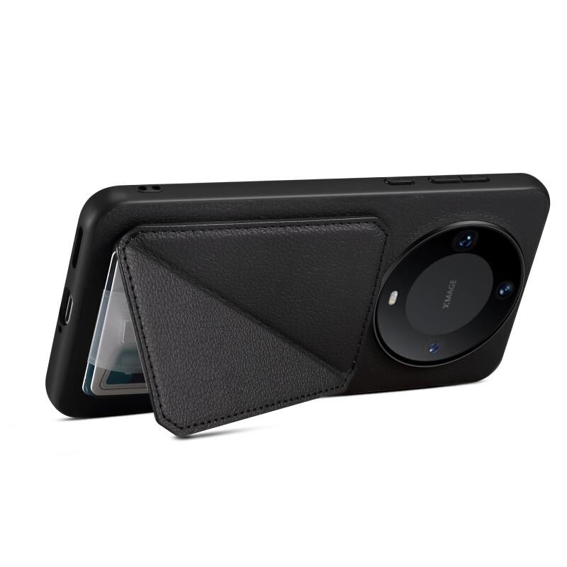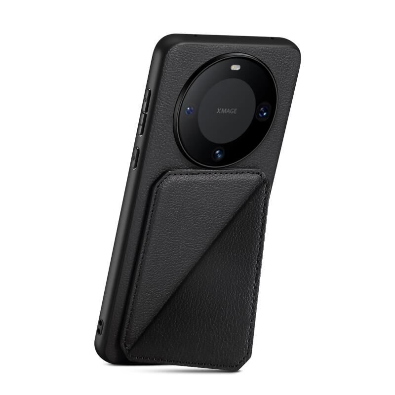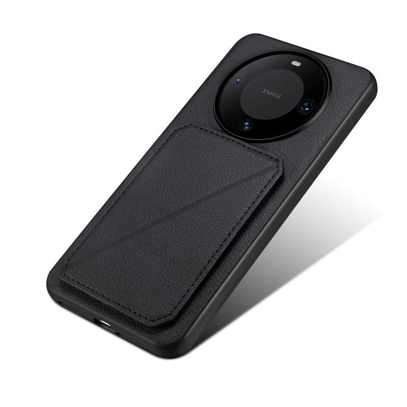 For Huawei Mate 60 Pro Denior Calf Texture Holder Electroplating Phone Case(Black) (Denior)