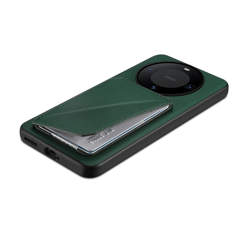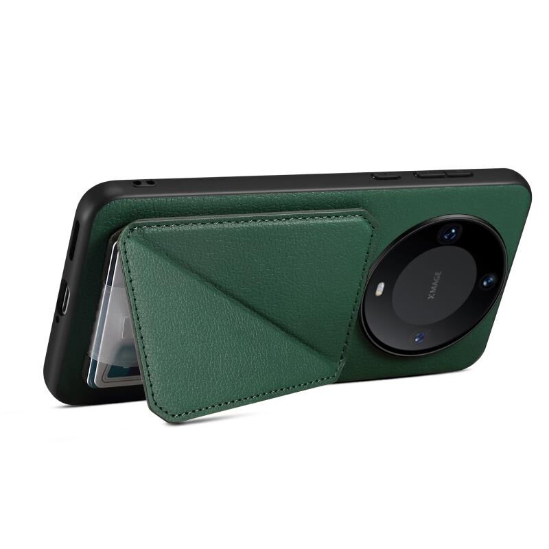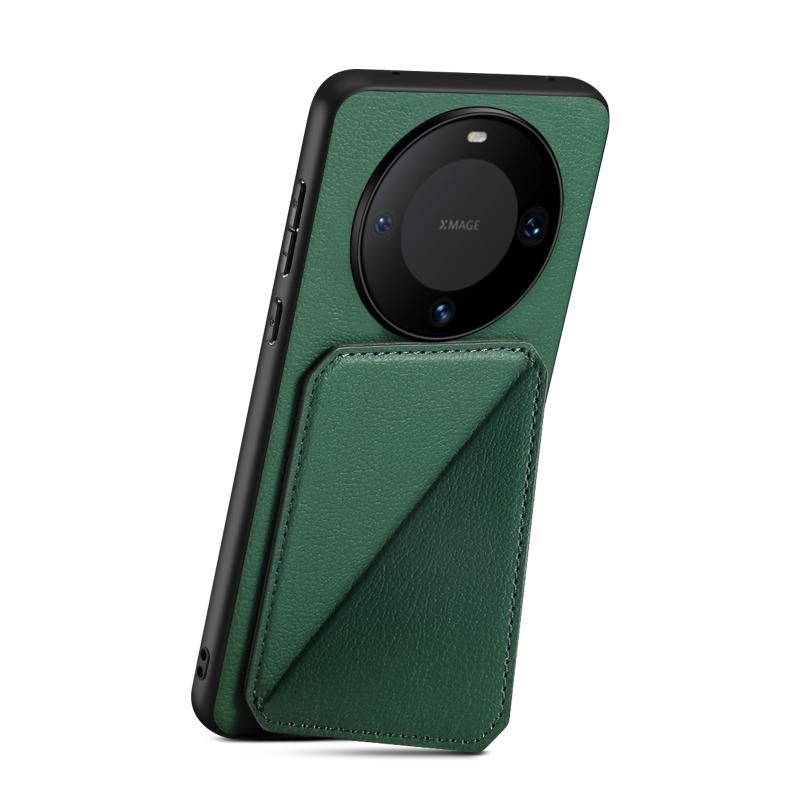 For Huawei Mate 60 Pro Denior Calf Texture Holder Electroplating Phone Case(Green) (Denior)