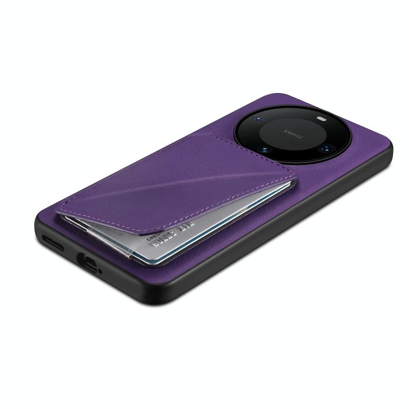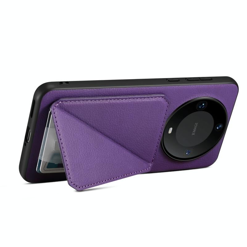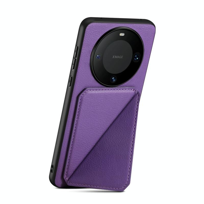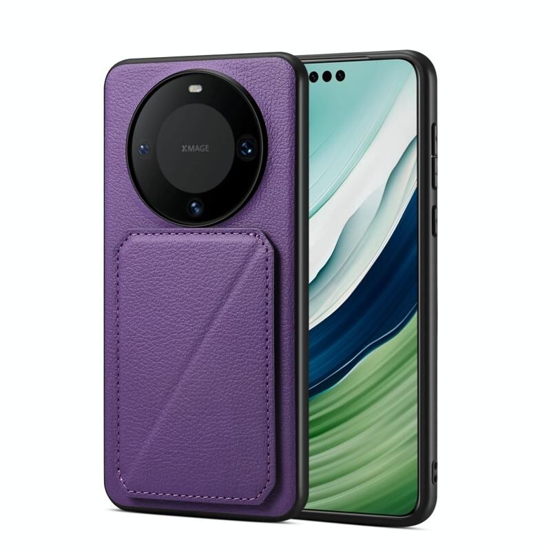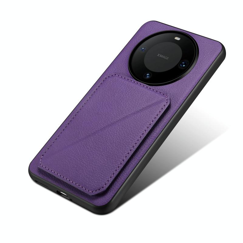 For Huawei Mate 60 Pro Denior Calf Texture Holder Electroplating Phone Case(Purple) (Denior)