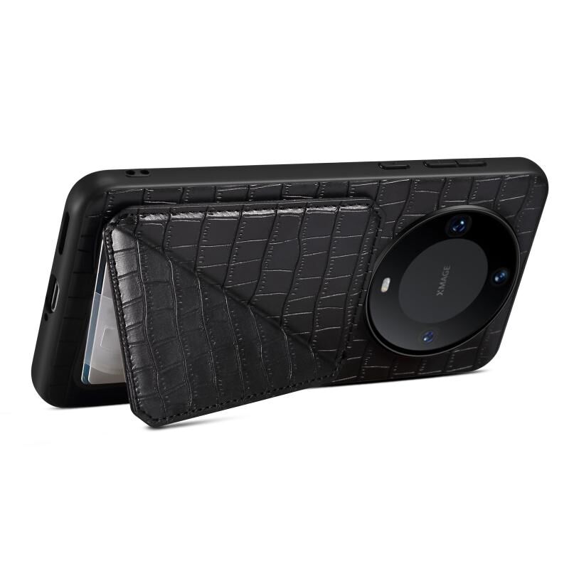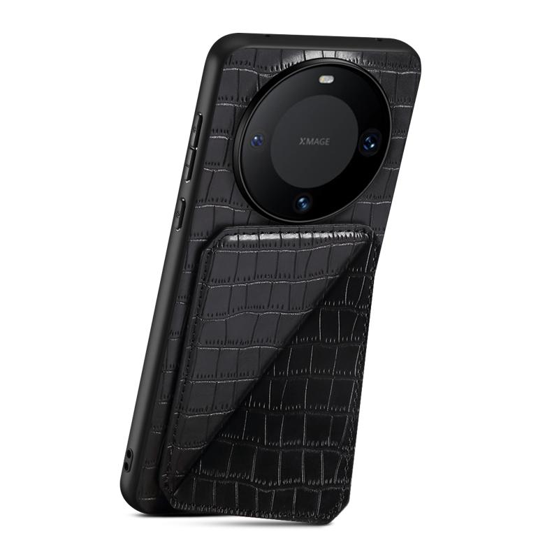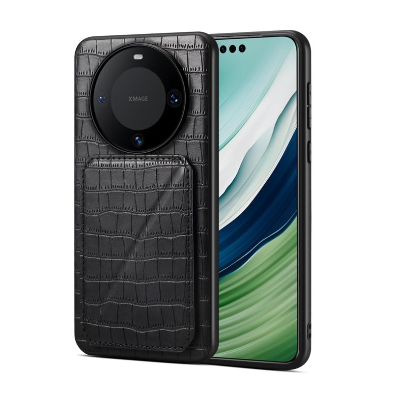 For Huawei Mate 60 Pro Denior Crocodile Texture Holder Electroplating Phone Case(Black) (Denior)