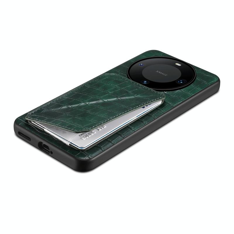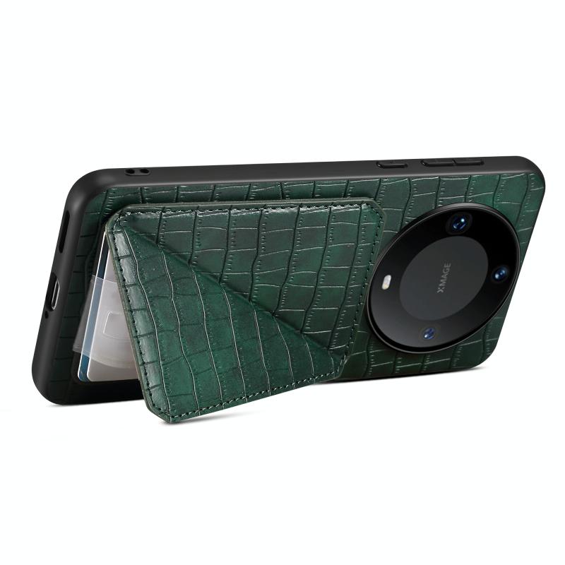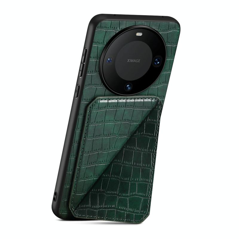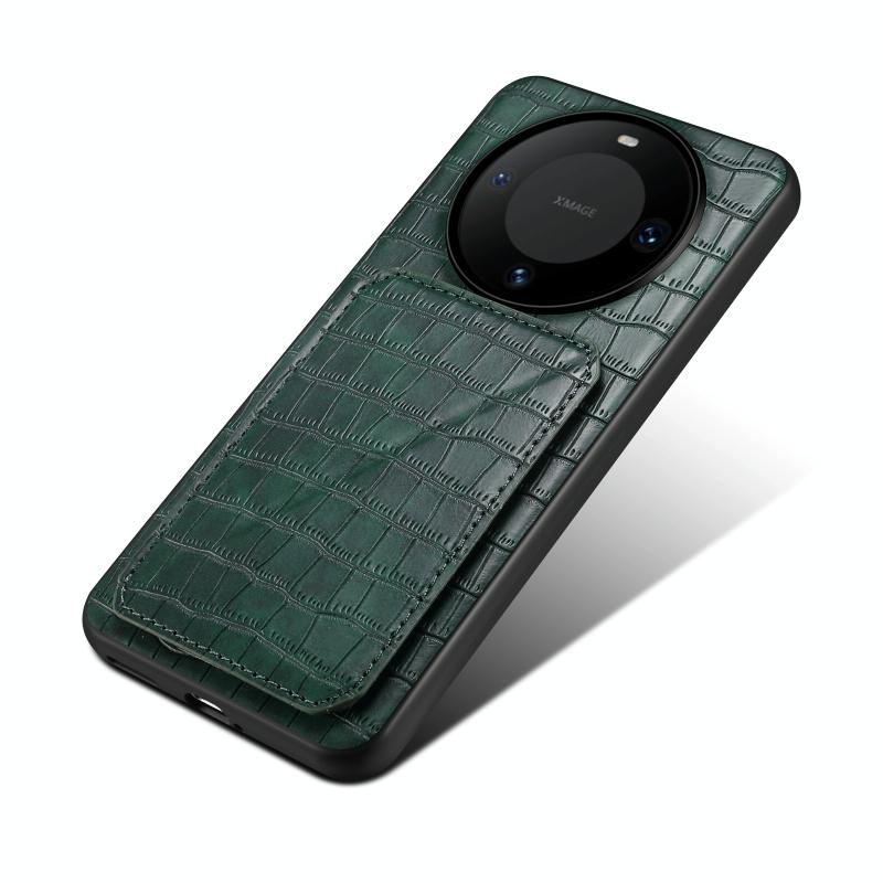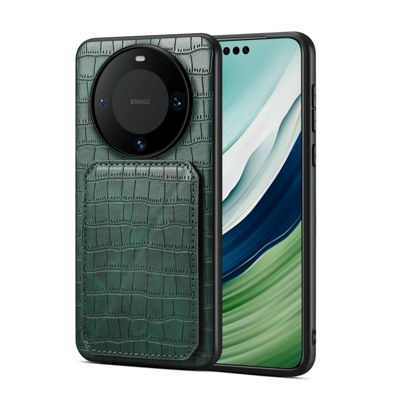 For Huawei Mate 60 Pro Denior Crocodile Texture Holder Electroplating Phone Case(Green) (Denior)