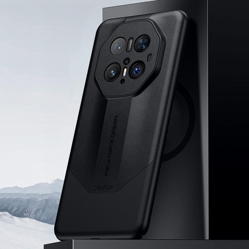 For Huawei Mate 70 RS Ultimate SULADA Splicing Plain Leather PC Shockproof Phone Case(Black) (SULADA)