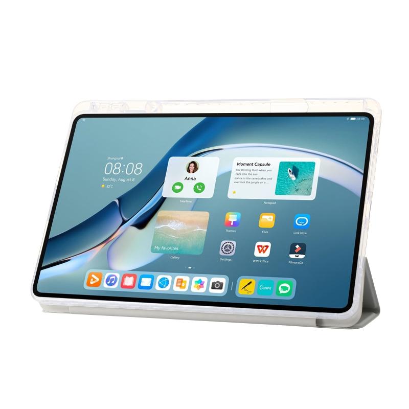 For Huawei Matepad 11 Pro 2024 Clear Acrylic 3-Fold Leather Tablet Case(Grey)