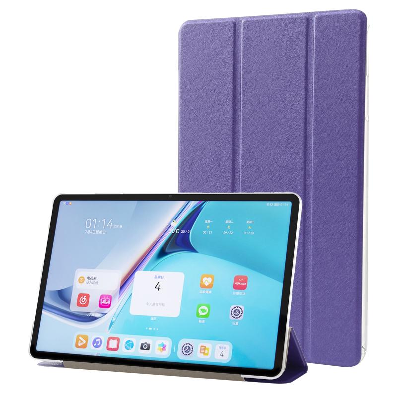 For Huawei MatePad Pro 11 2022 Silk Texture Leather Tablet Case with Three-folding Holder(Dark Purple)