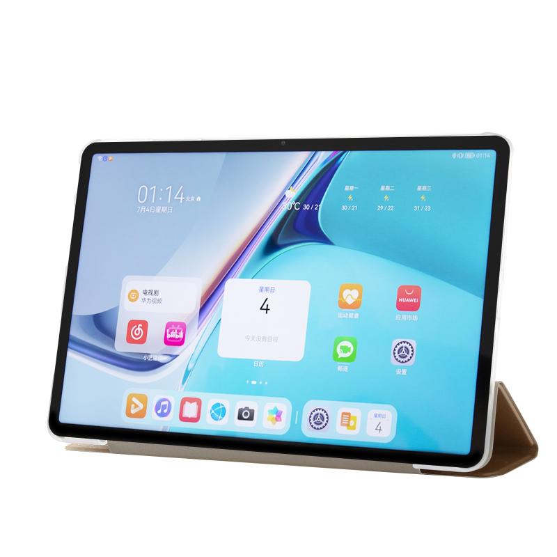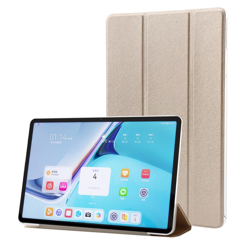 For Huawei MatePad Pro 11 2022 Silk Texture Leather Tablet Case with Three-folding Holder(Gold)
