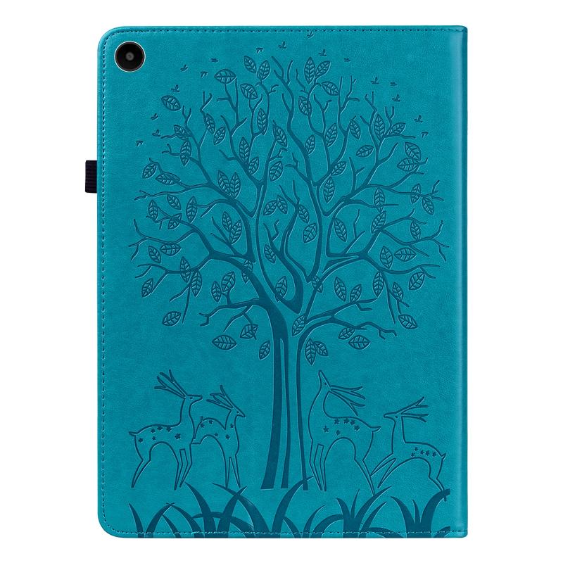 For Huawei MatePad SE 10.4 2022 Tree & Deer Pattern Embossed Leather Tablet Case(Blue)