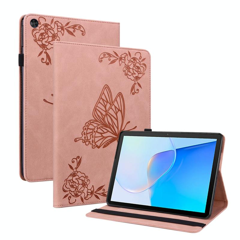 For Huawei MatePad SE Butterfly Flower Embossed Leather Tablet Case(Rose Gold)