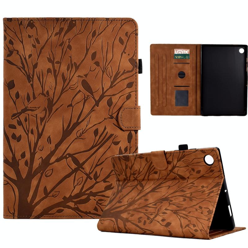 For Huawei MatePad SE Fortune Tree Pressure Flower PU Tablet Case(Brown)