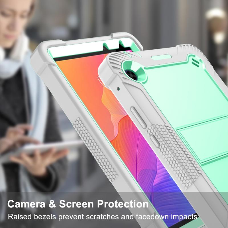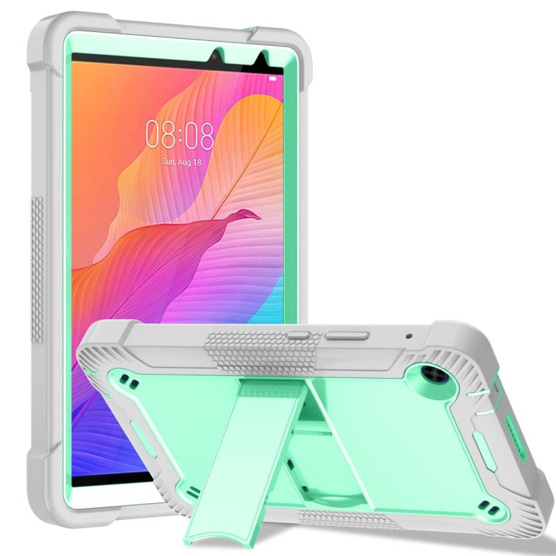 For Huawei MatePad T8 Silicone + PC Shockproof Protective Case with Holder(Gray + Green)