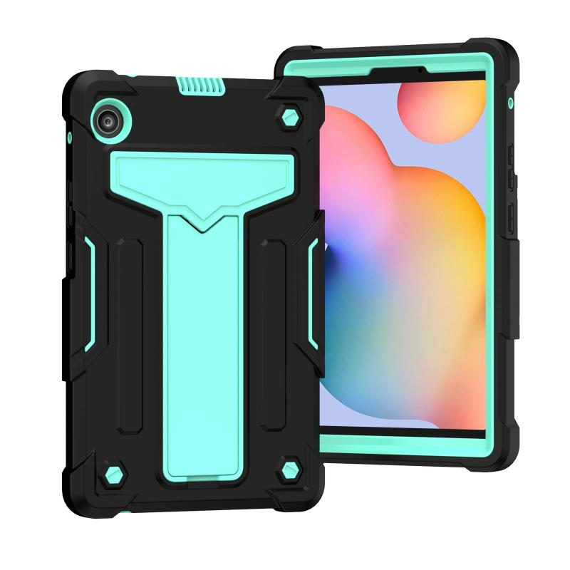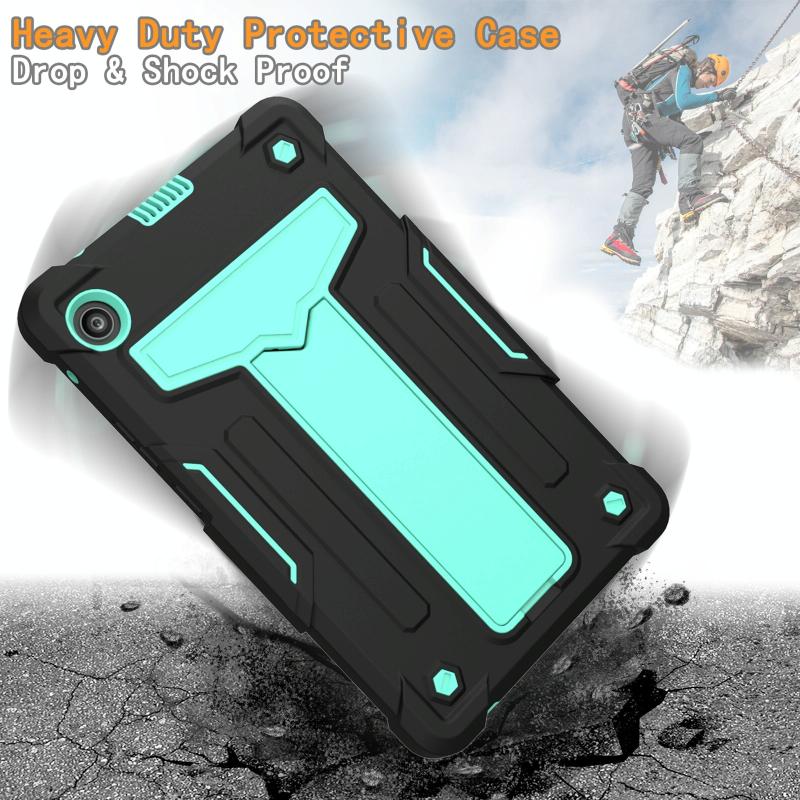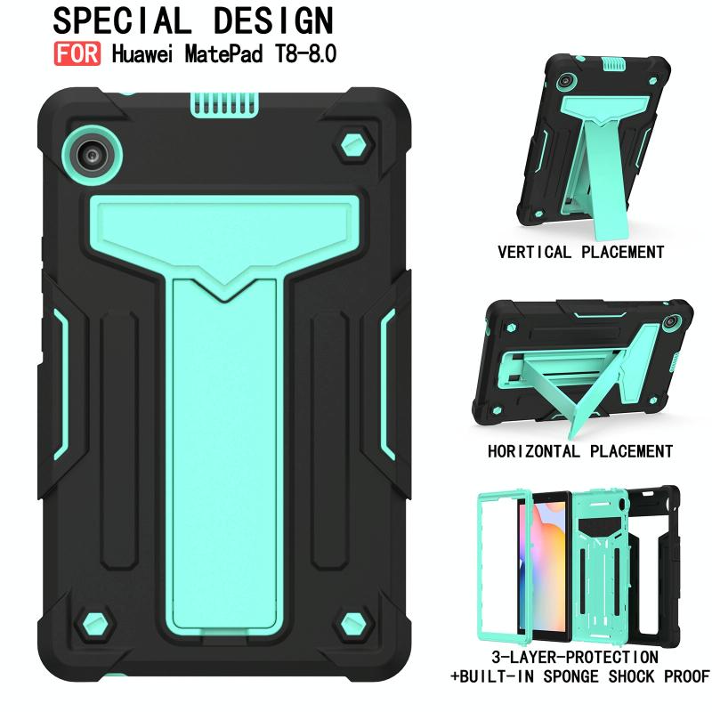 For Huawei MatePad T8 T-shaped Bracket Contrast Color Shockproof PC + Silicone Protective Case(Black+Mint Geen)