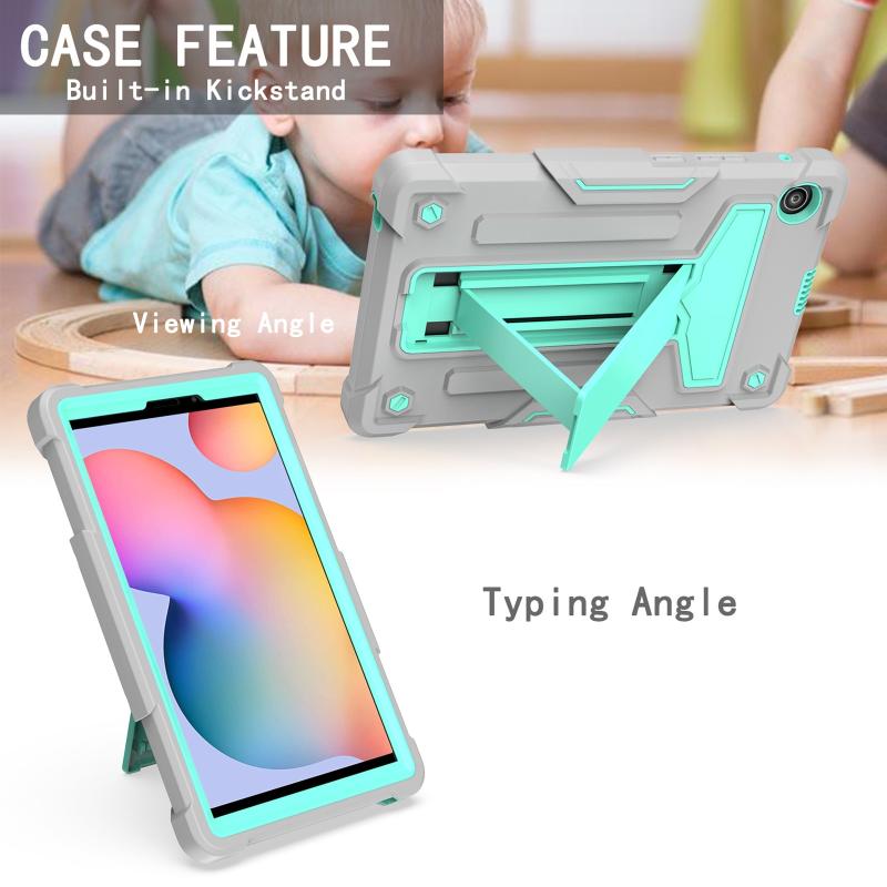 For Huawei MatePad T8 T-shaped Bracket Contrast Color Shockproof PC + Silicone Protective Case(Grey+Mint Green)