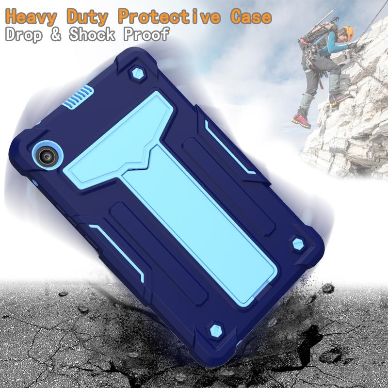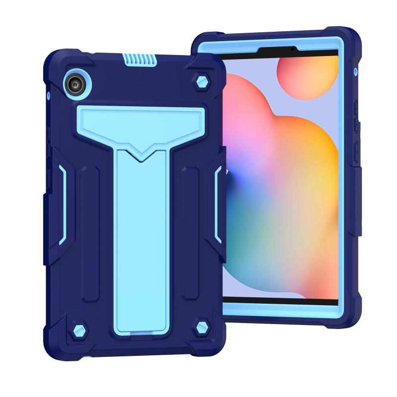 For Huawei MatePad T8 T-shaped Bracket Contrast Color Shockproof PC + Silicone Protective Case(Navy+Blue)
