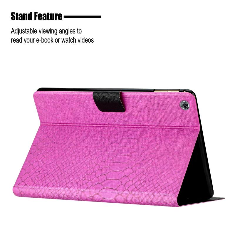 For Huawei MediaPad M5 lite 10.1 Solid Color Crocodile Texture Leather Smart Tablet Case(Rose Red)