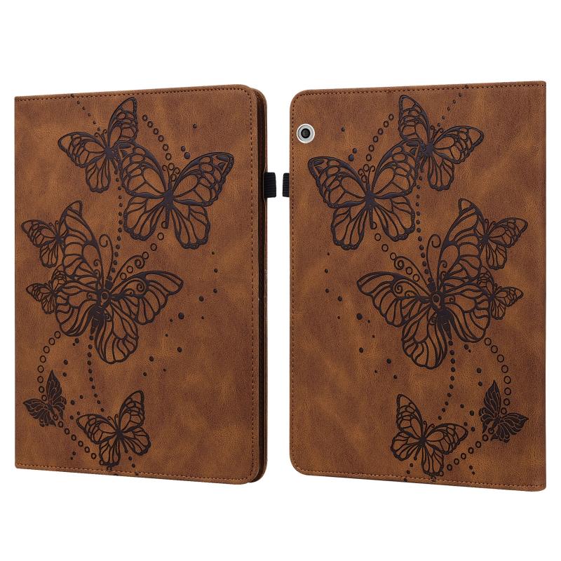 For Huawei MediaPad T3 10 9.6 inch Embossed Butterfly Pattern Horizontal Flip Leather Tablet Case(Brown)