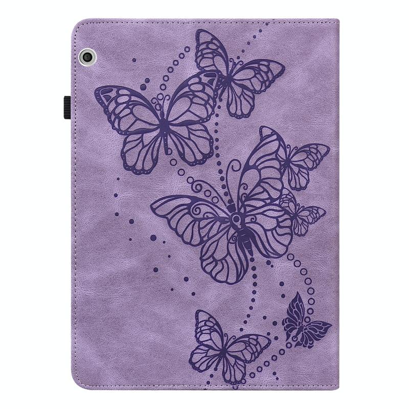 For Huawei MediaPad T3 10 9.6 inch Embossed Butterfly Pattern Horizontal Flip Leather Tablet Case(Purple)
