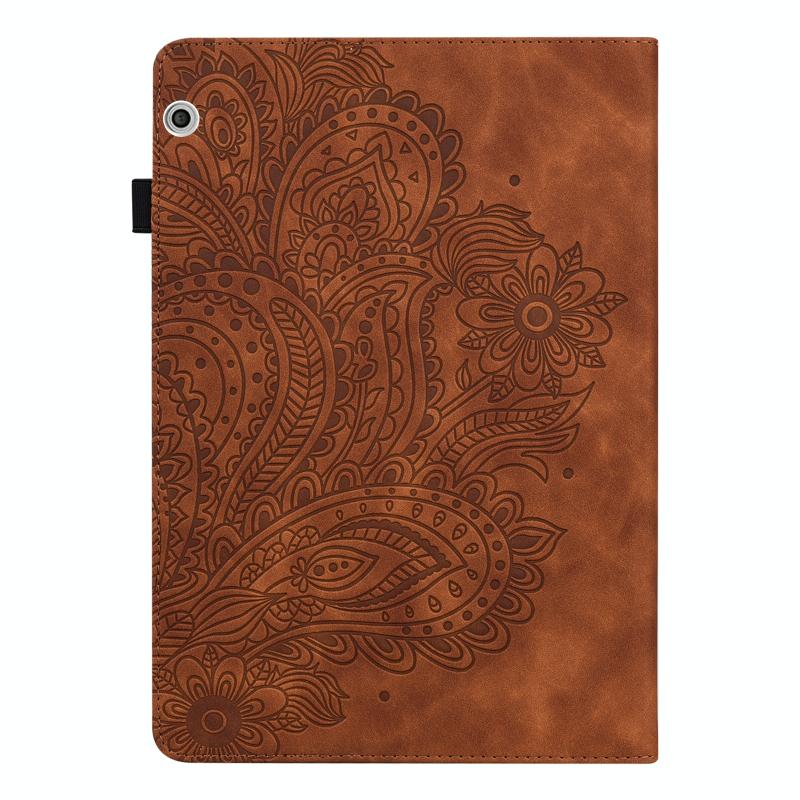 For Huawei MediaPad T3 10 Peacock Embossed Pattern TPU + PU Leather Tablet Case(Brown)