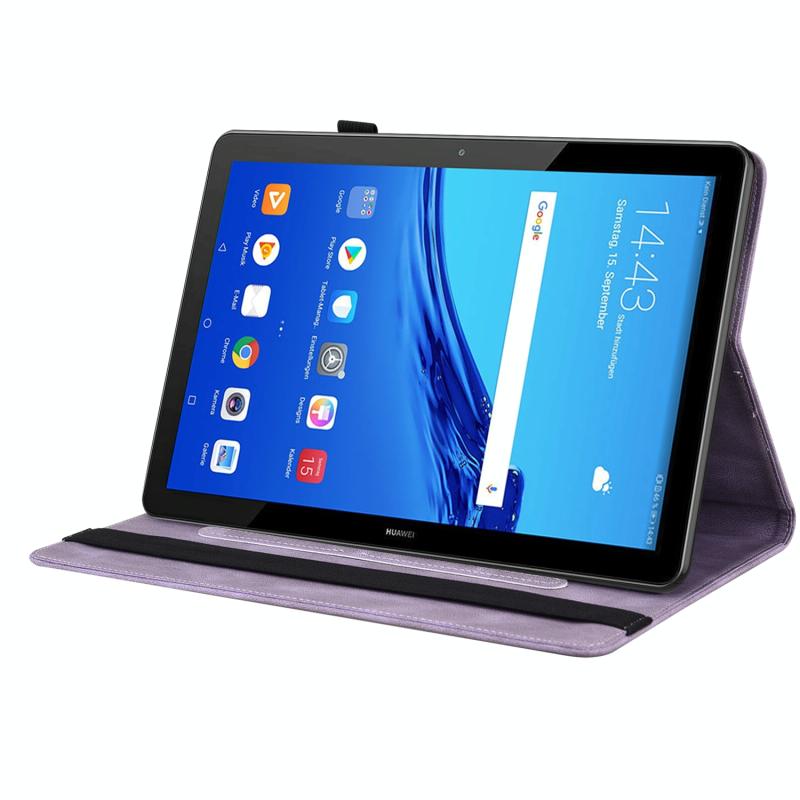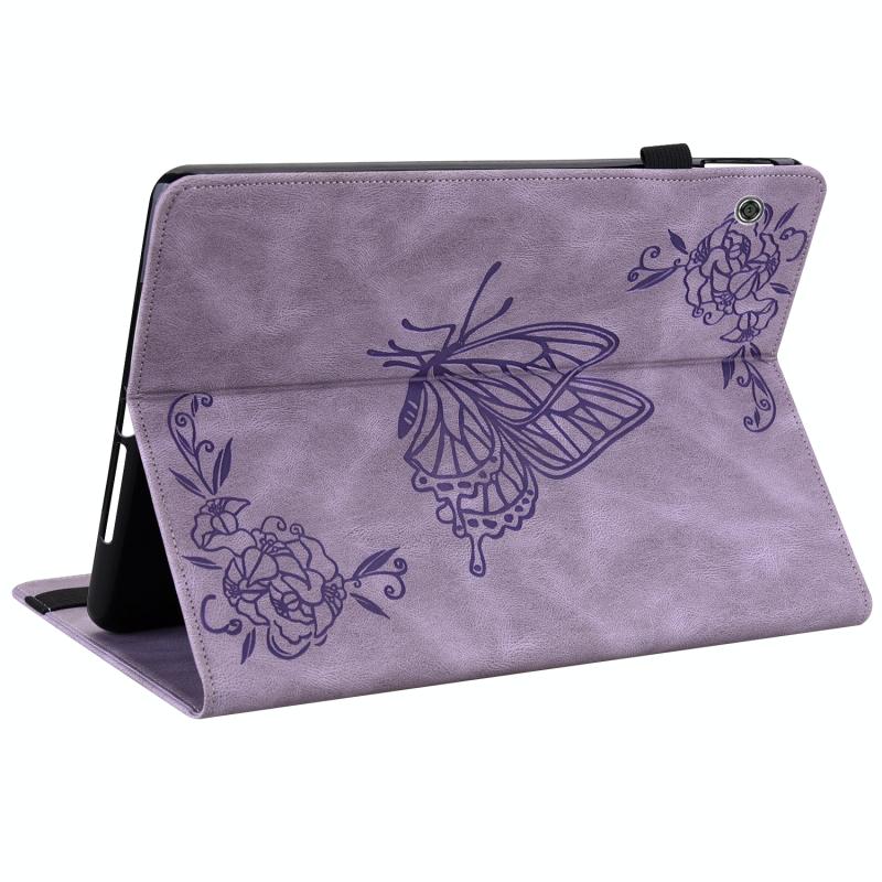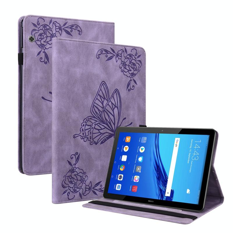 For Huawei MediaPad T5 Butterfly Flower Embossed Leather Tablet Case(Purple)