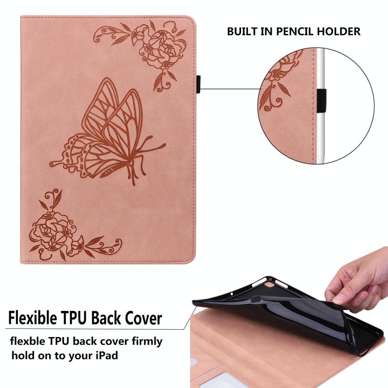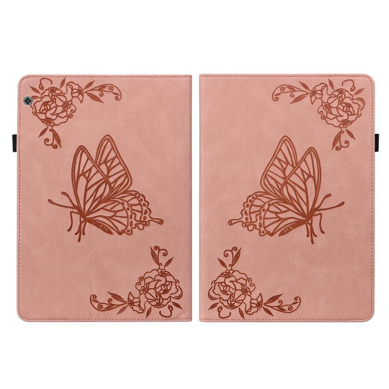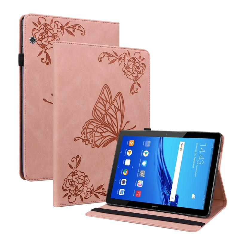 For Huawei MediaPad T5 Butterfly Flower Embossed Leather Tablet Case(Rose Gold)