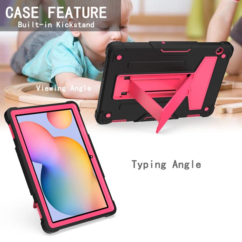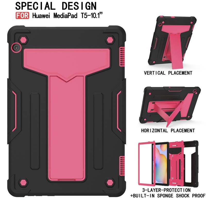 For Huawei MediaPad T5 T-shaped Bracket Contrast Color Shockproof PC + Silicone Protective Case(Black+Rose Red)