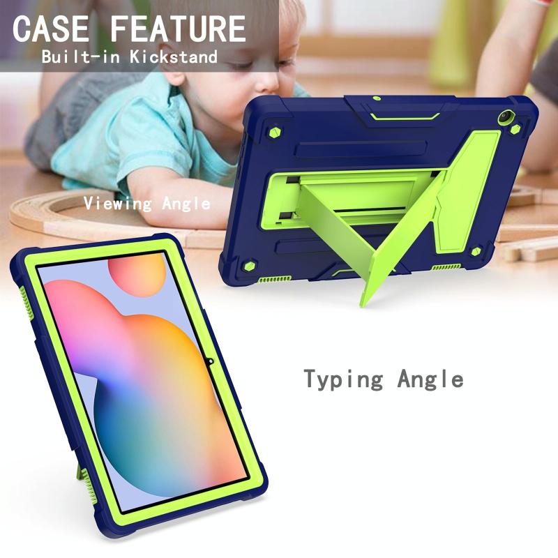 For Huawei MediaPad T5 T-shaped Bracket Contrast Color Shockproof PC + Silicone Protective Case(Navy+Green)