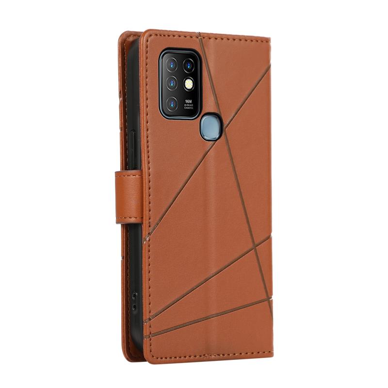 For Infinix Hot 10 PU Genuine Leather Texture Embossed Line Phone Case(Brown)