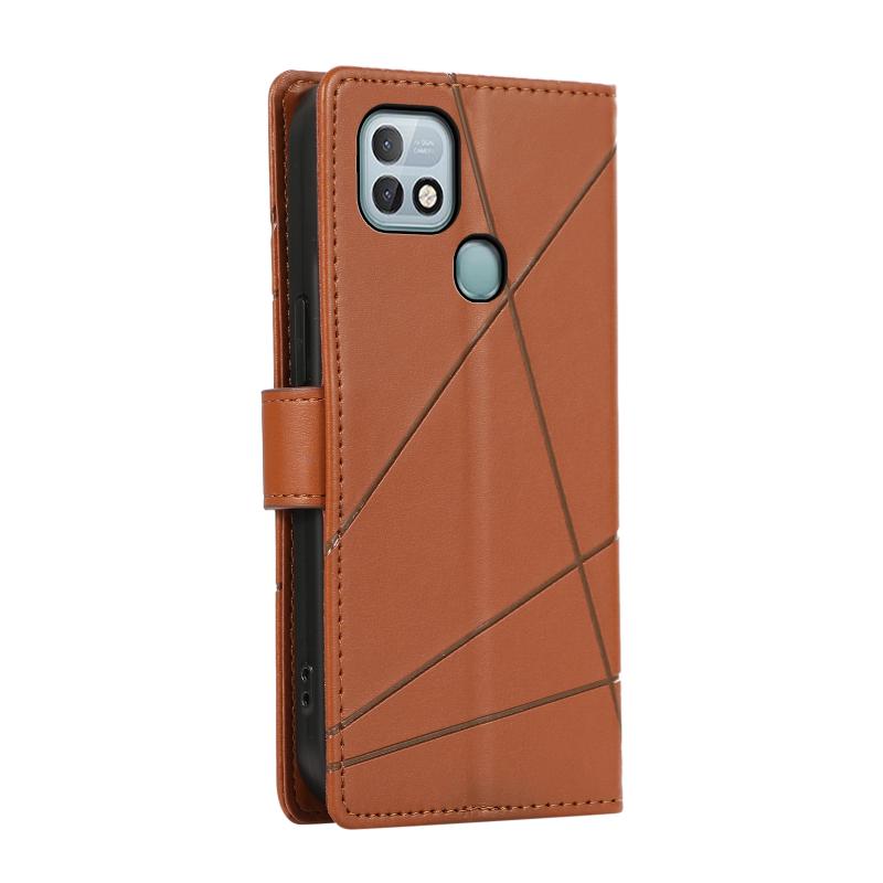 For Infinix Hot 10i PU Genuine Leather Texture Embossed Line Phone Case(Brown)