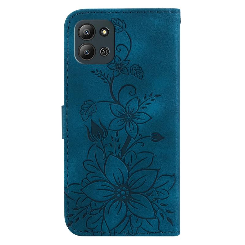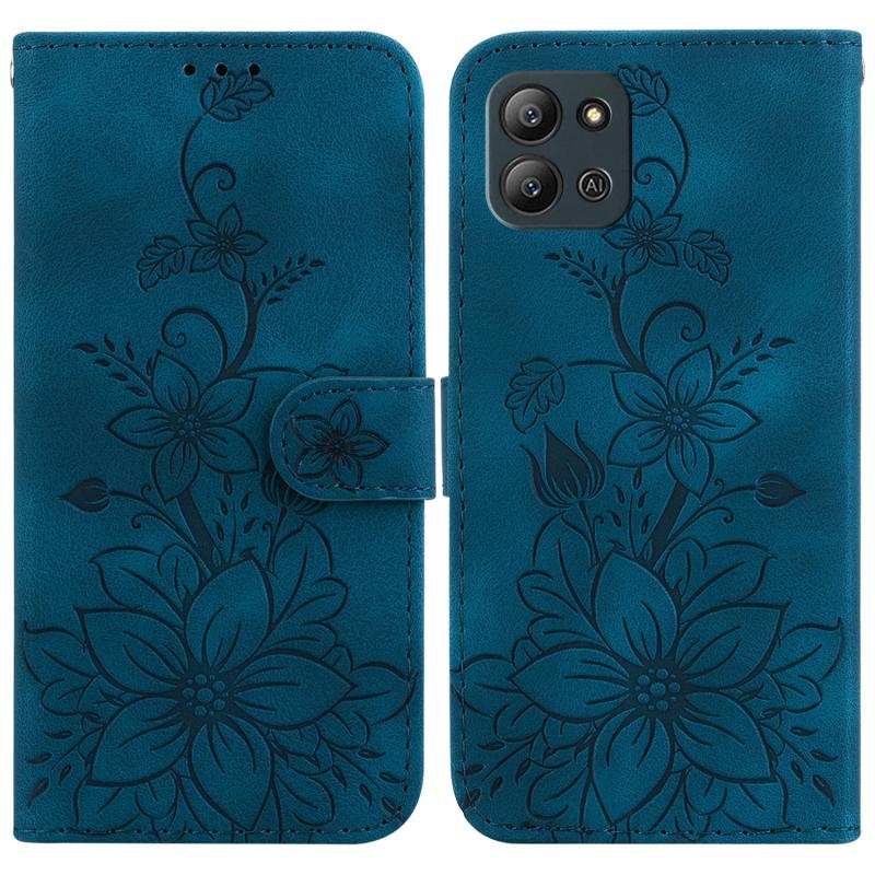 For Infinix Hot 11 2022 Lily Embossed Leather Phone Case(Dark Blue)