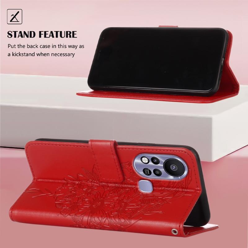For Infinix Hot 11s Embossed Butterfly Leather Phone Case(Red)