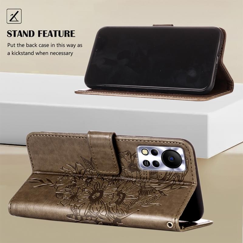 For Infinix Hot 11s NFC Embossed Butterfly Leather Phone Case(Grey)