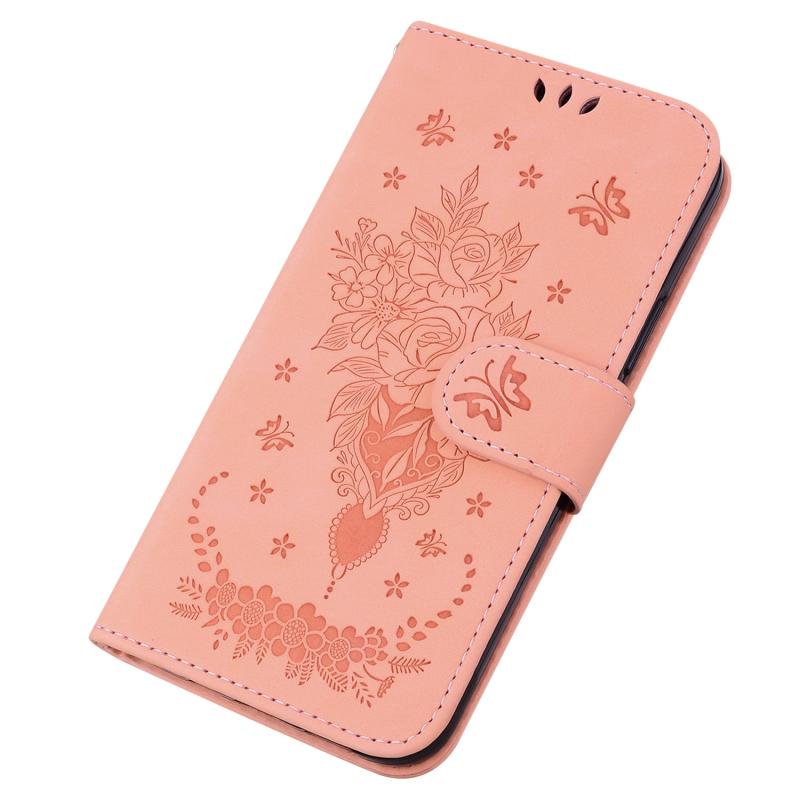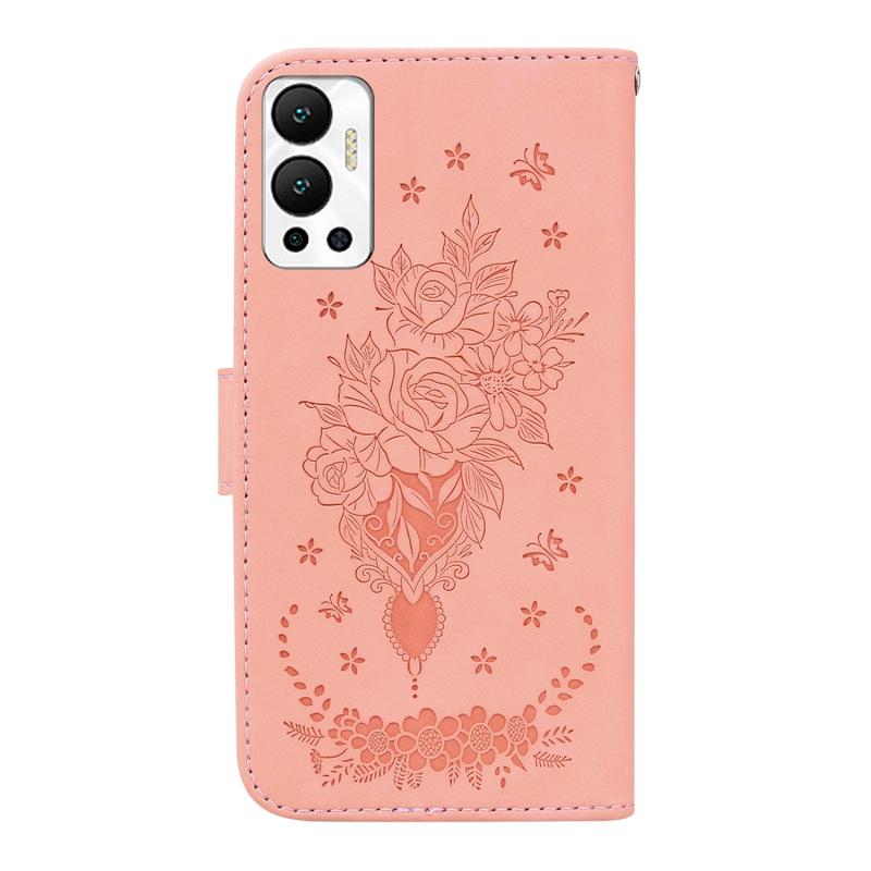 For Infinix Hot 12 Butterfly Rose Embossed Leather Phone Case(Pink)