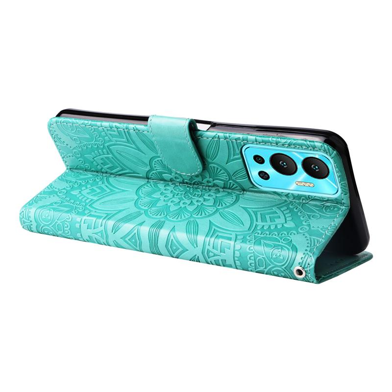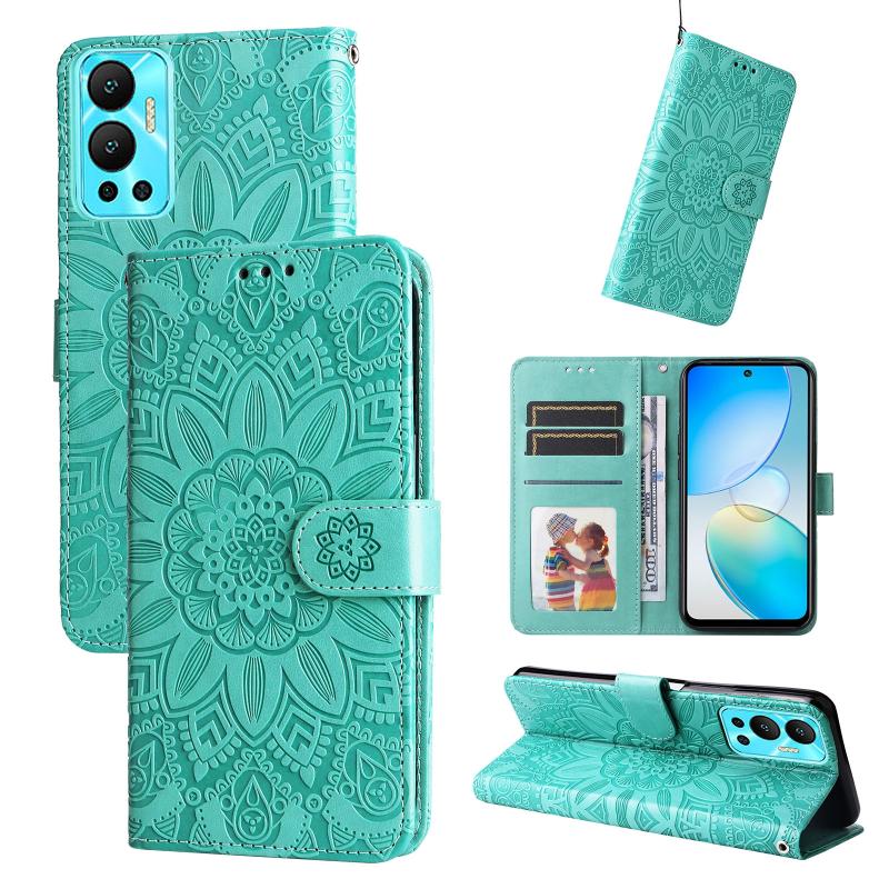 For Infinix Hot 12 Embossed Sunflower Leather Phone Case(Green)