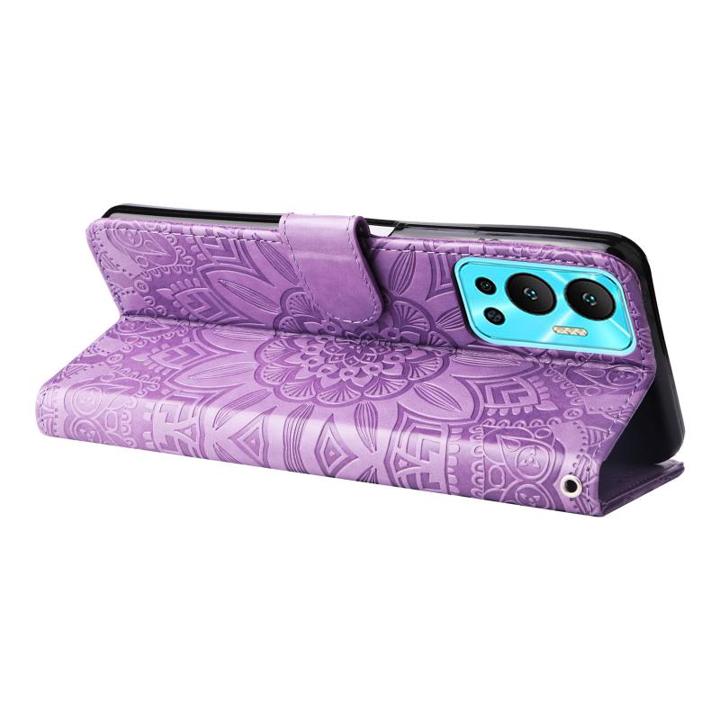 For Infinix Hot 12 Embossed Sunflower Leather Phone Case(Purple)