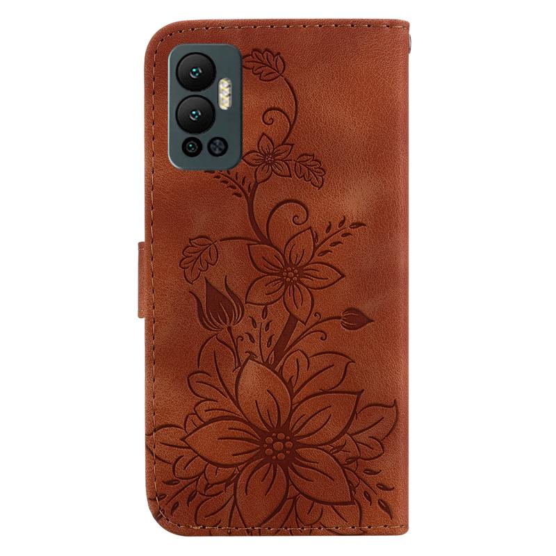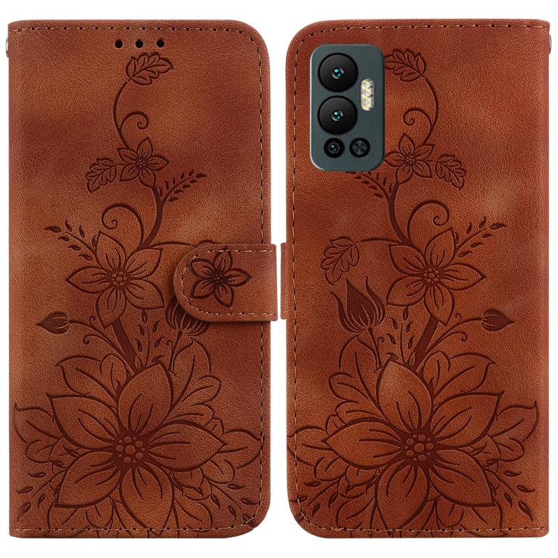 For Infinix Hot 12 Lily Embossed Leather Phone Case(Brown)