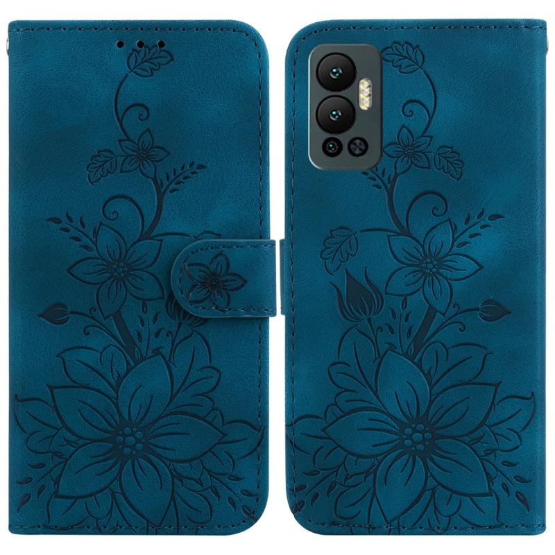 For Infinix Hot 12 Lily Embossed Leather Phone Case(Dark Blue)