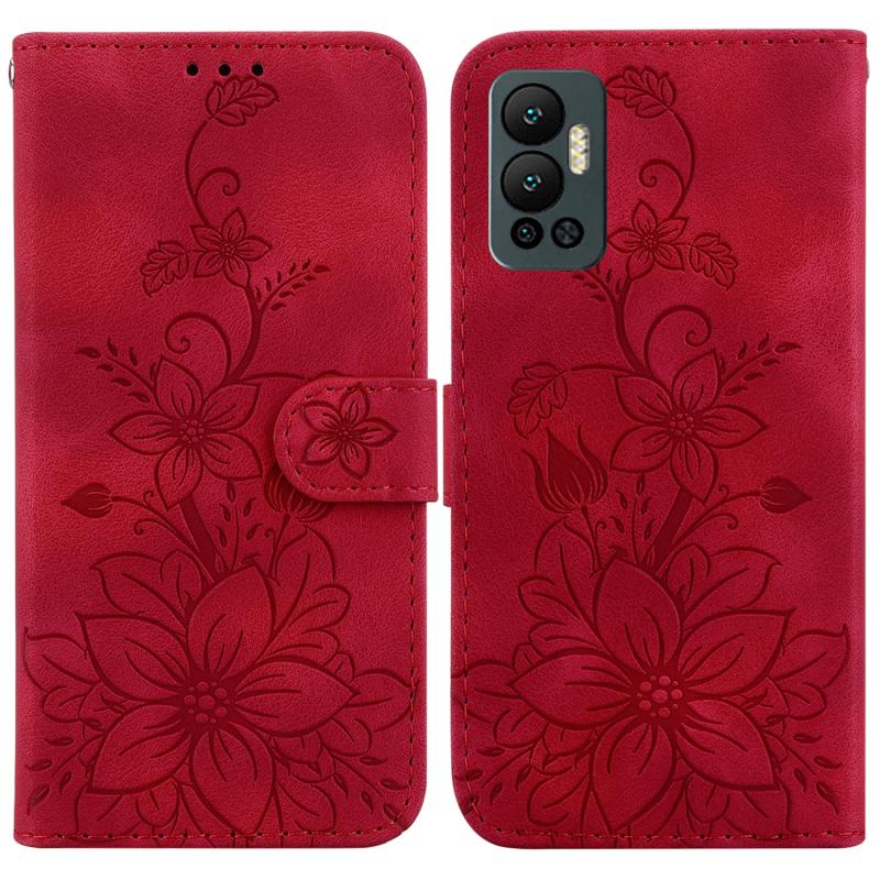 For Infinix Hot 12 Lily Embossed Leather Phone Case(Red)