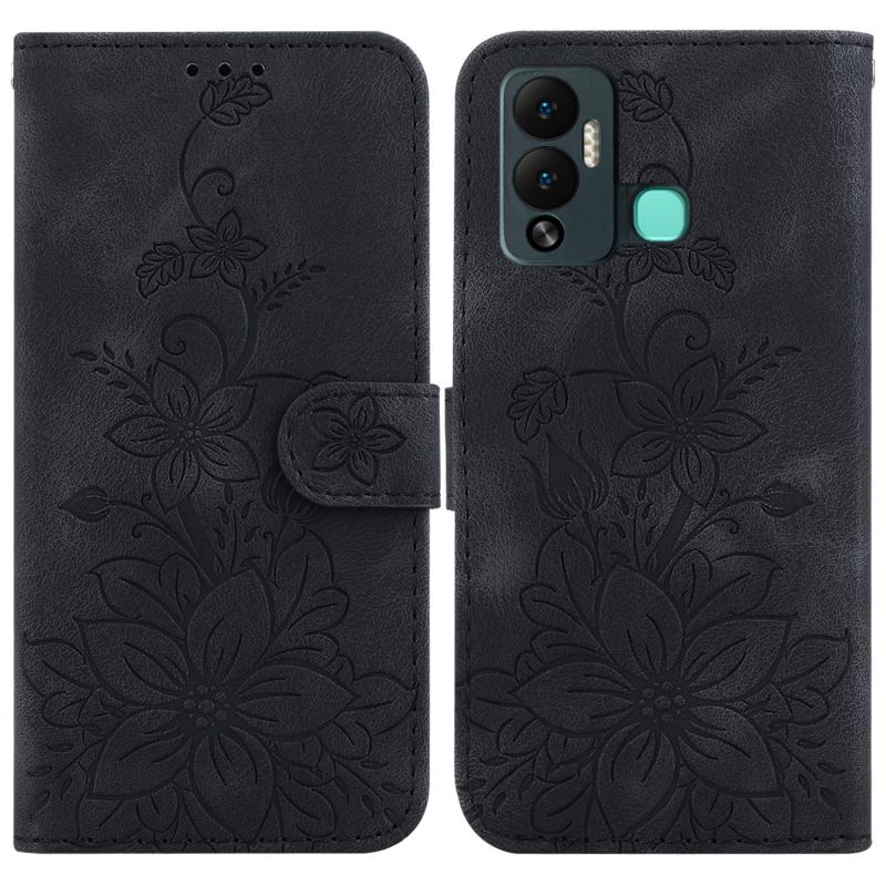 For Infinix Hot 12 Play Lily Embossed Leather Phone Case(Black)