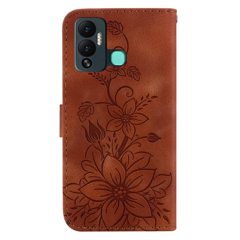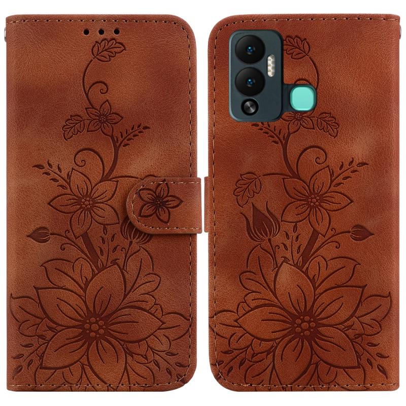 For Infinix Hot 12 Play Lily Embossed Leather Phone Case(Brown)