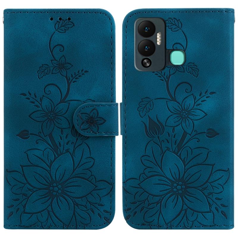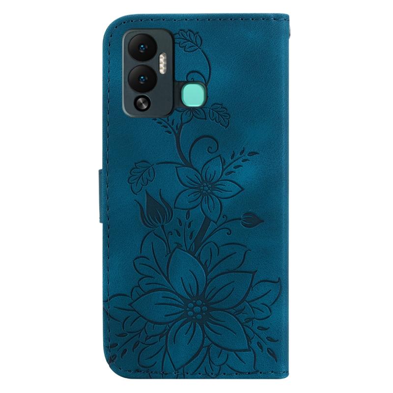 For Infinix Hot 12 Play Lily Embossed Leather Phone Case(Dark Blue)