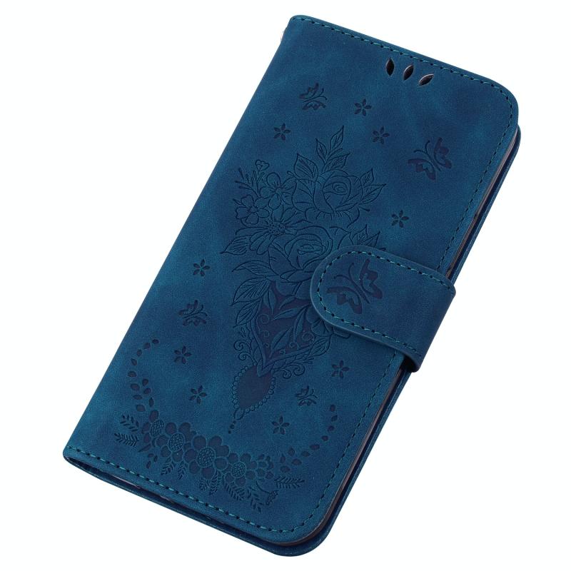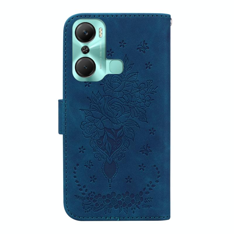 For Infinix Hot 12 Pro Butterfly Rose Embossed Leather Phone Case(Blue)
