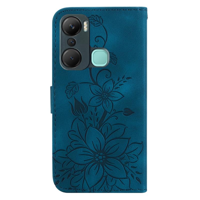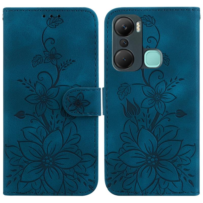 For Infinix Hot 12 Pro Lily Embossed Leather Phone Case(Dark Blue)