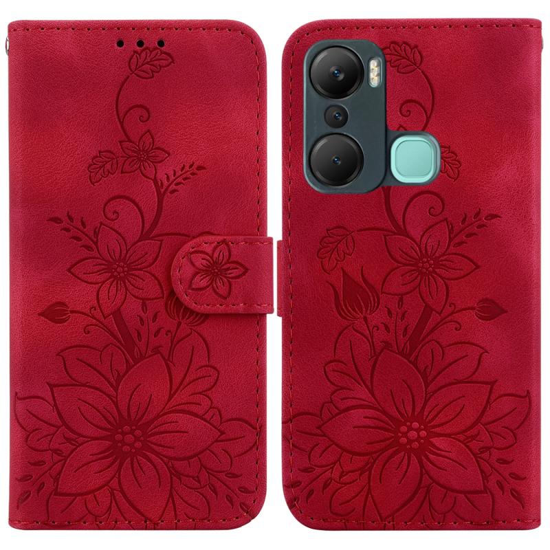 For Infinix Hot 12 Pro Lily Embossed Leather Phone Case(Red)