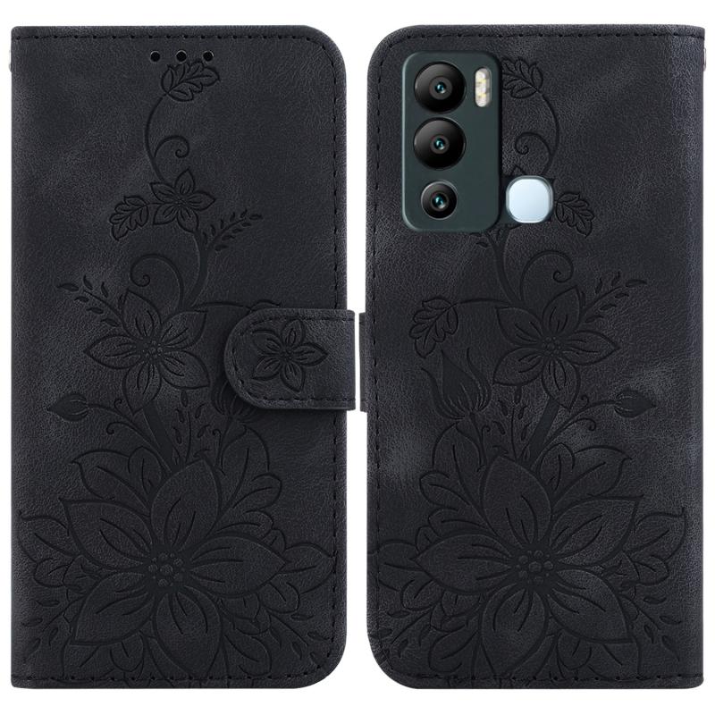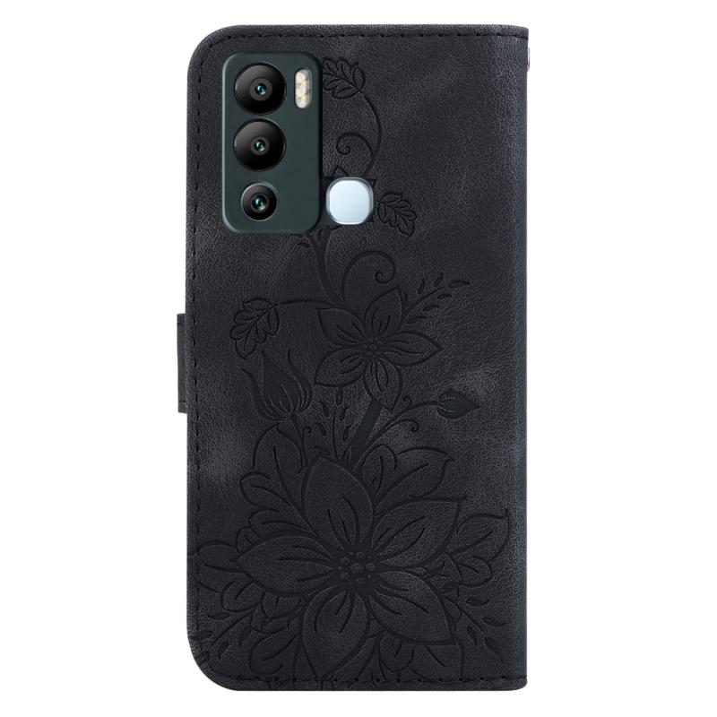 For Infinix Hot 12i Lily Embossed Leather Phone Case(Black)