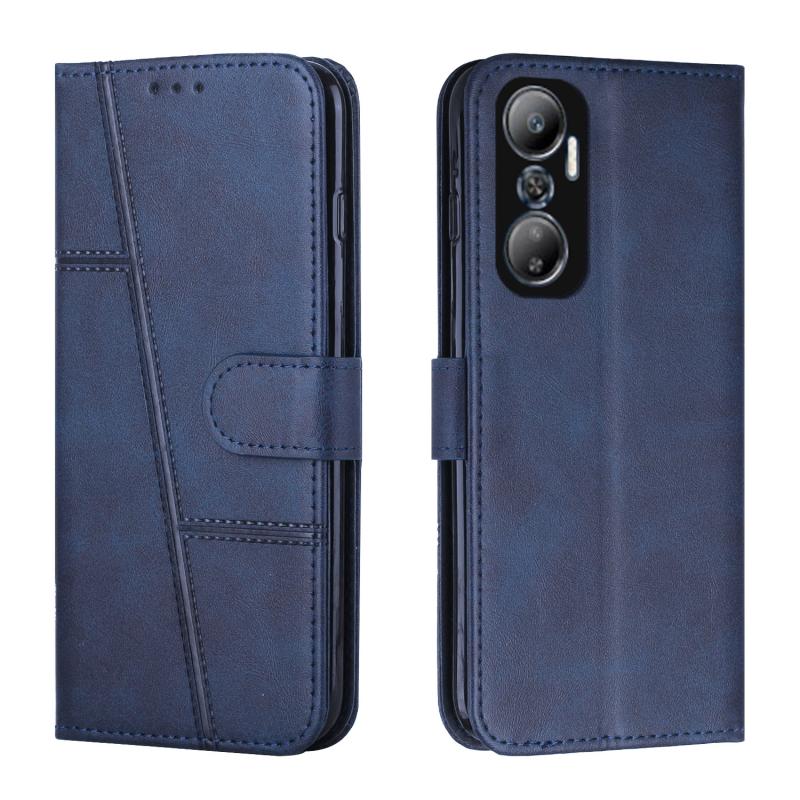 For Infinix Hot 20 4G Stitching Calf Texture Buckle Leather Phone Case(Blue)