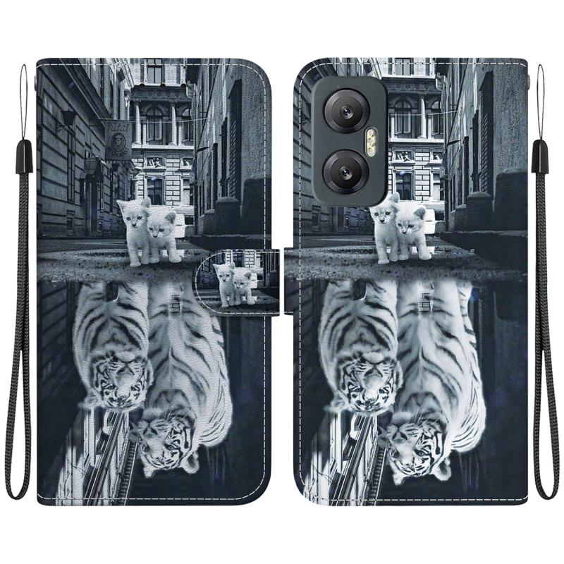 For Infinix Hot 20 5G Crystal Texture Colored Drawing Leather Phone Case(Cat Tiger Reflection)