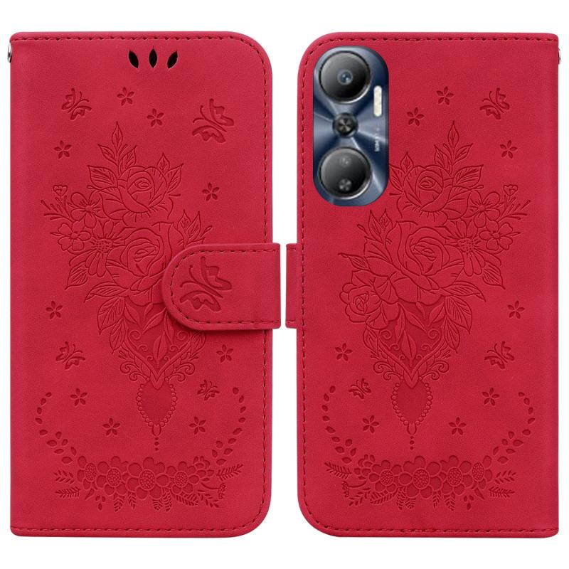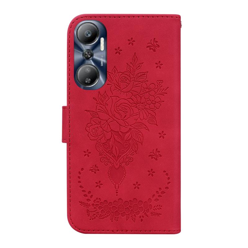 For Infinix Hot 20 Butterfly Rose Embossed Leather Phone Case(Red)