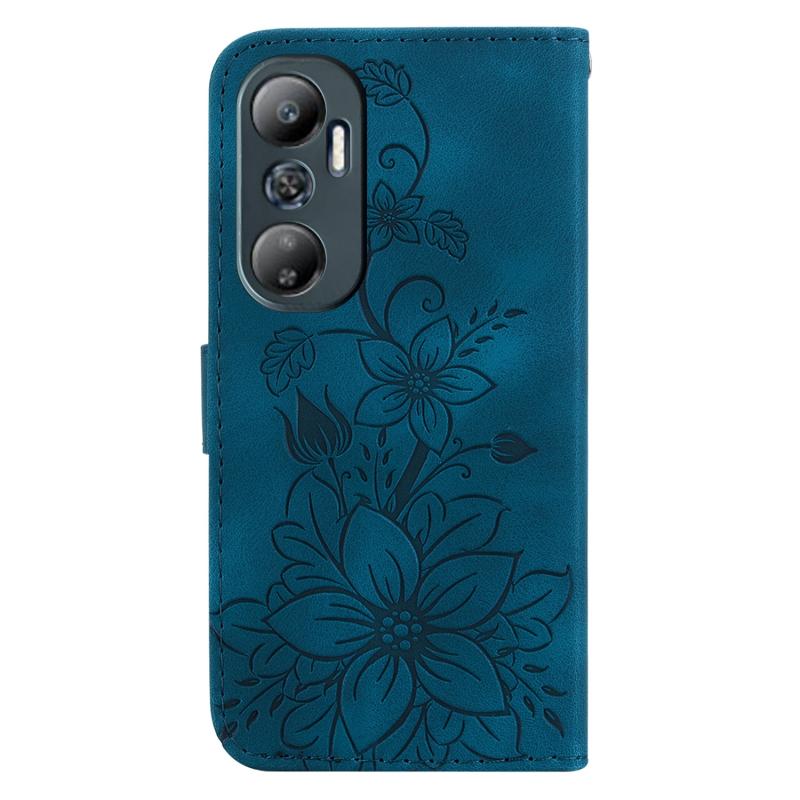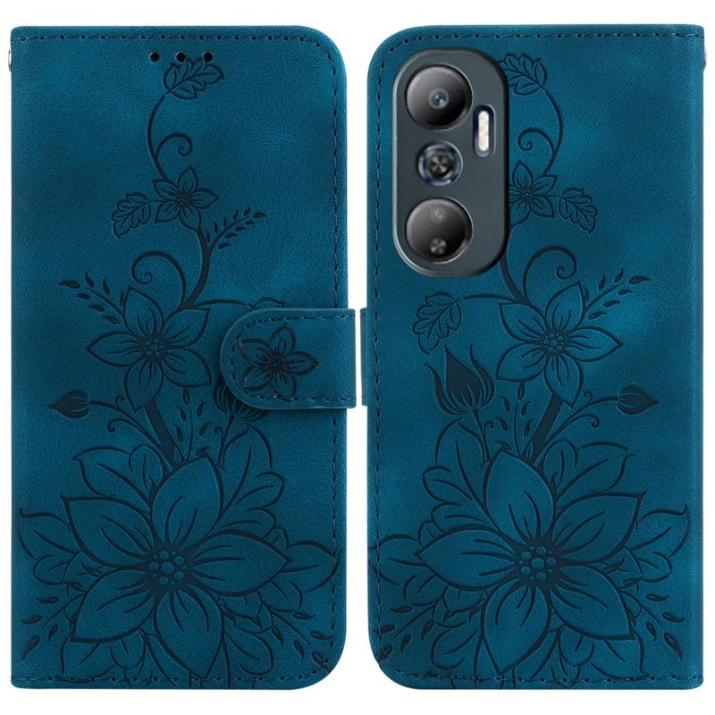 For Infinix Hot 20 Lily Embossed Leather Phone Case(Dark Blue)