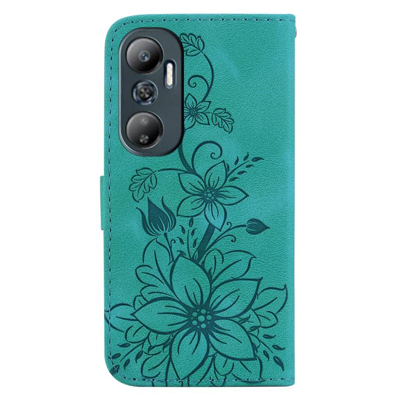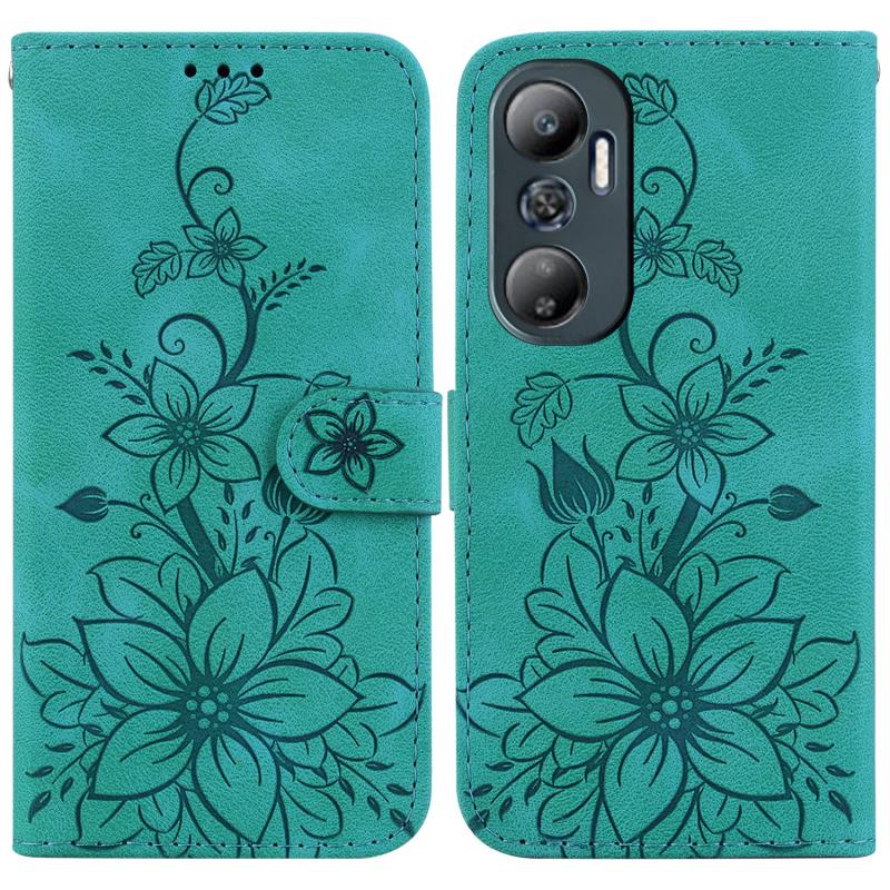 For Infinix Hot 20 Lily Embossed Leather Phone Case(Green)