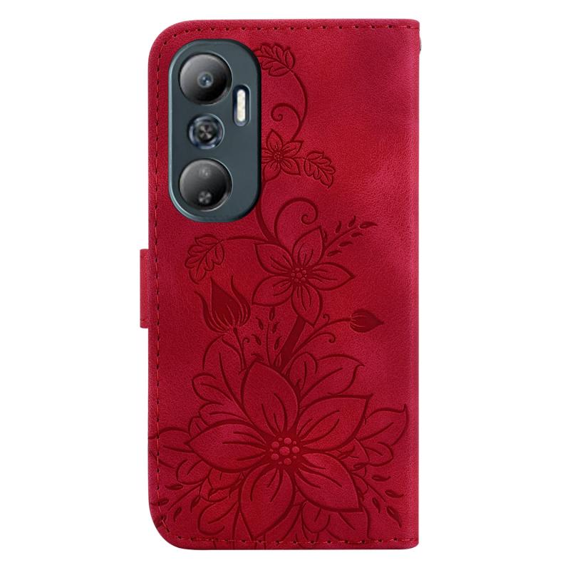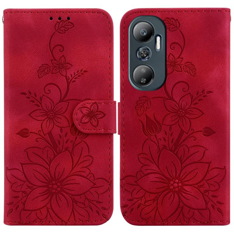 For Infinix Hot 20 Lily Embossed Leather Phone Case(Red)