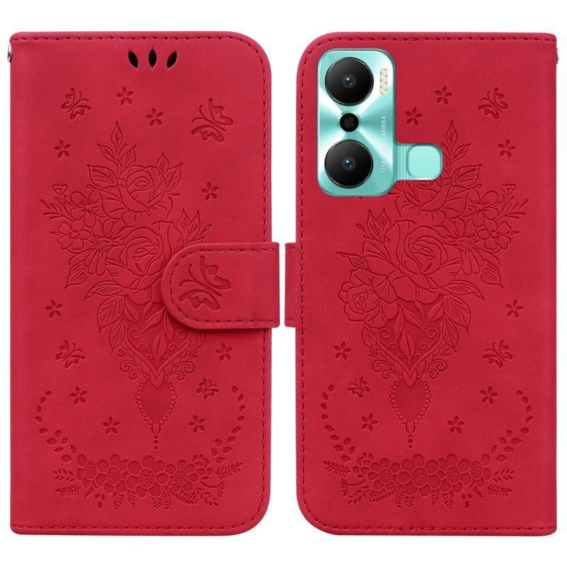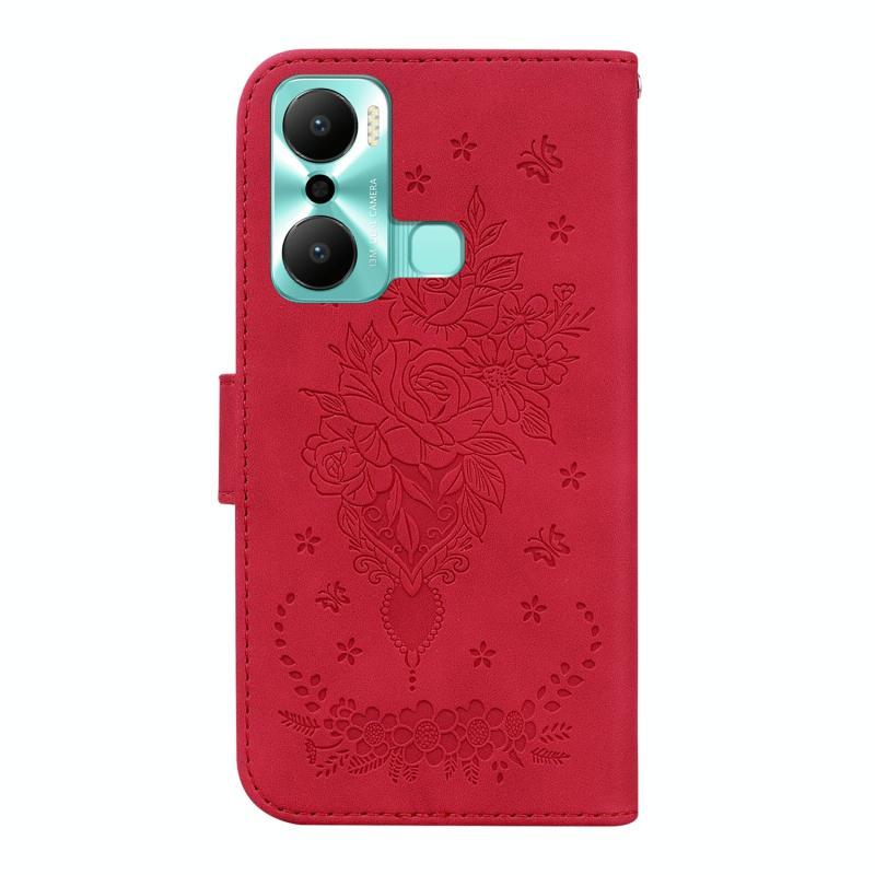 For Infinix Hot 20 Play Butterfly Rose Embossed Leather Phone Case(Red)