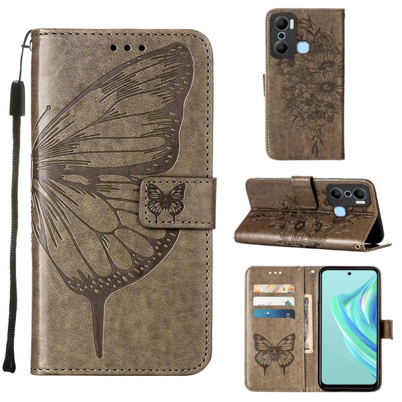 For Infinix Hot 20 Play Embossed Butterfly Flip Leather Phone Case(Grey)